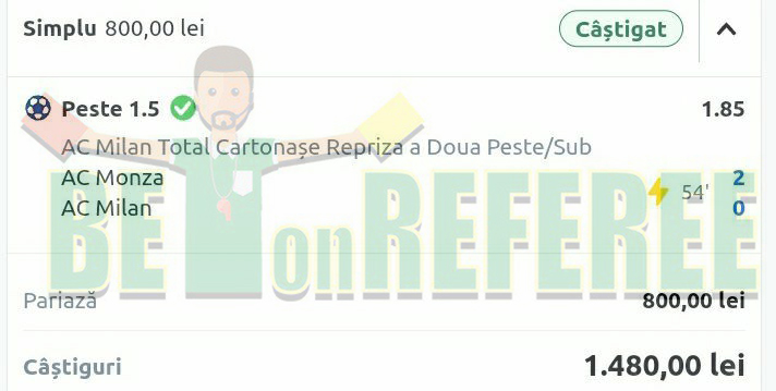| February 18 | AC Monza v AC Milan | Milan o 1.5 yc | 800 | 1.85 | Won | 680.0 |