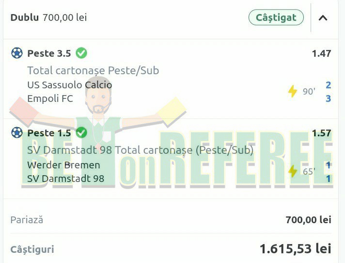 | February 03 | LIVE TICKET RED CARDS | BAYERN CFR MAINZ U 0.5 RC | 700 | 1.81 | Won | 567.0 |