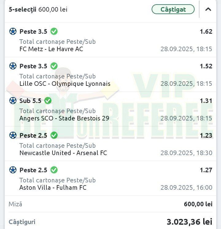 | September 22 | Csikszereda v FC Metaloglobus Bucuresti | O 21.5 fouls | 600 | 1.85 | Lost | -600 |